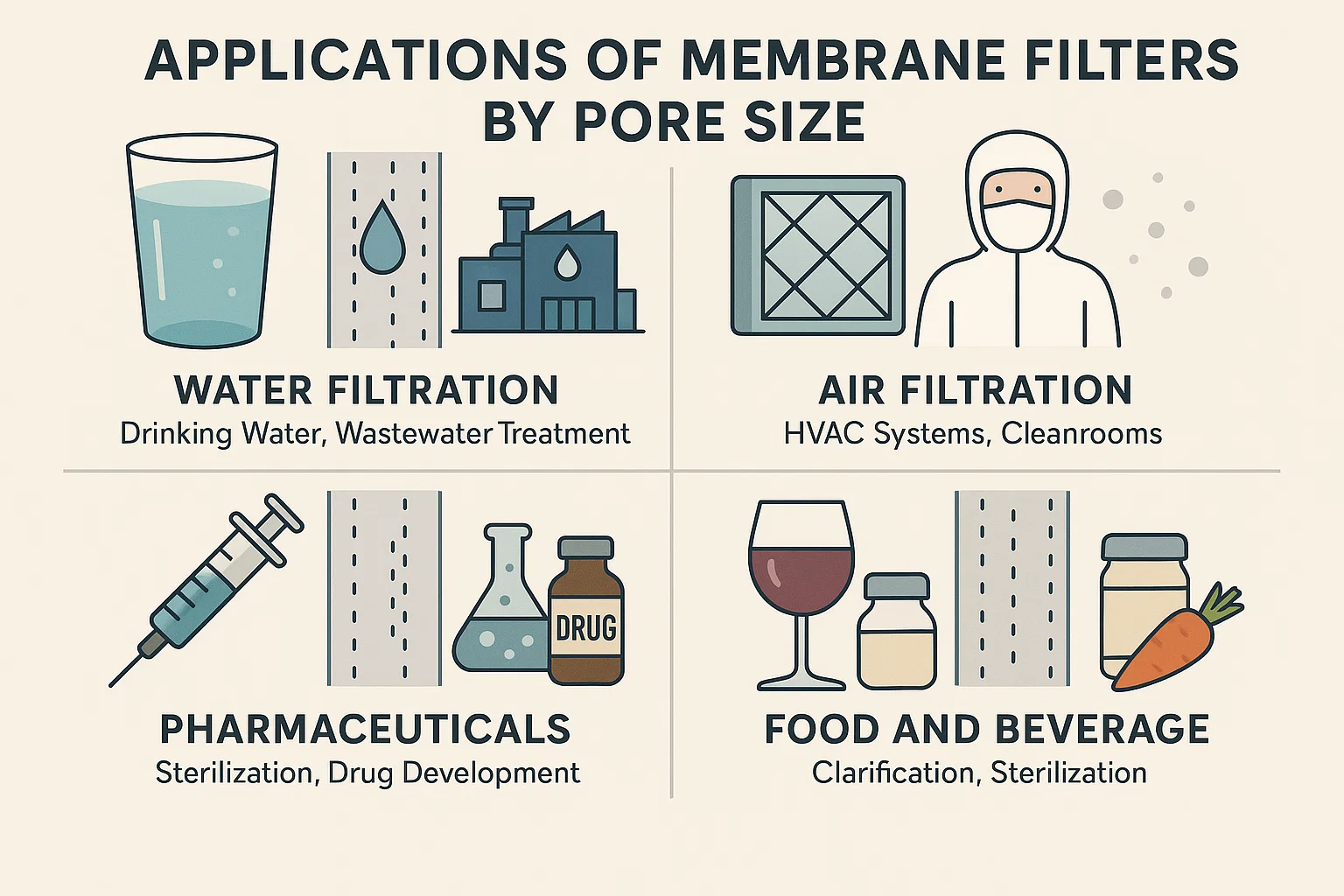Water purification (pre-treatment), food/beverage clarification, pharmaceutical cold sterilization, bioreactor filtration |