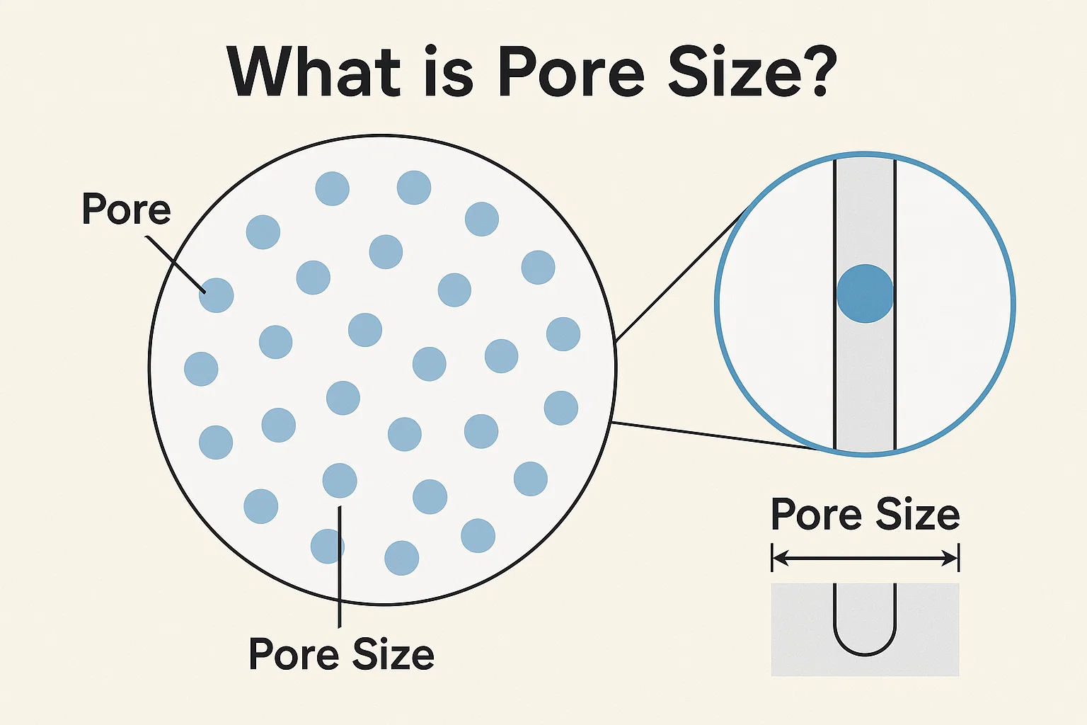 The units of measurement for pore size are typically expressed in either microns (µm) or nanometers (nm). To put these units into perspective: