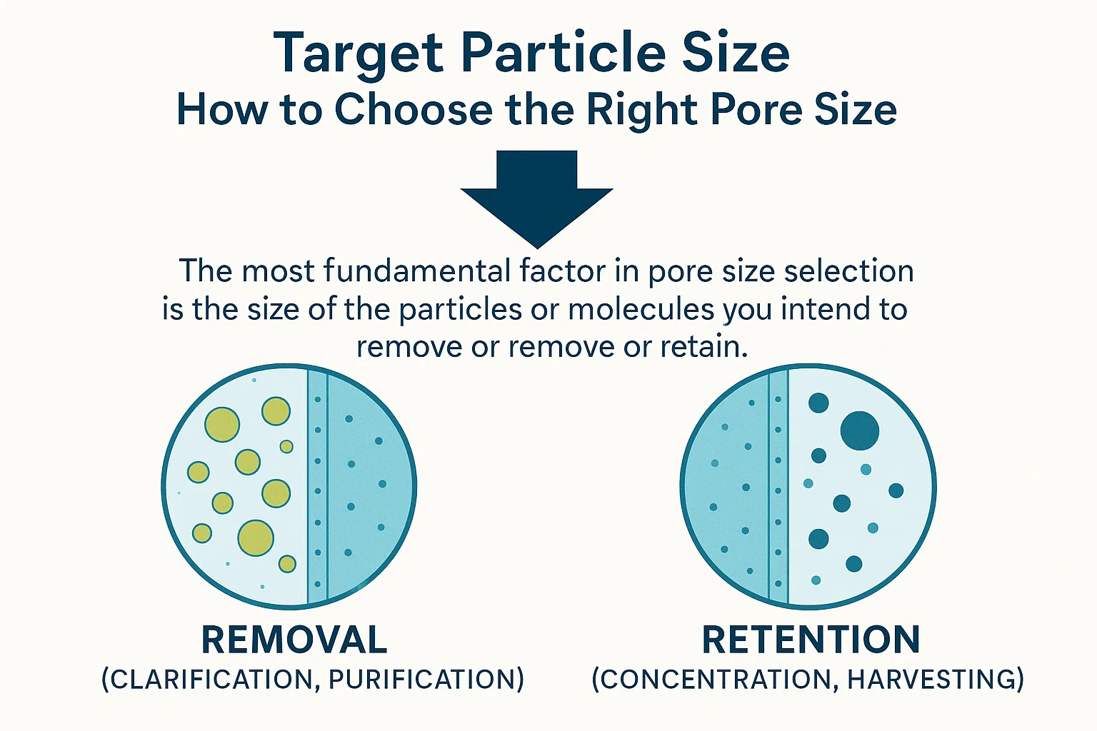 The most fundamental factor in pore size selection is the size of the particles or molecules you intend to remove or retain.