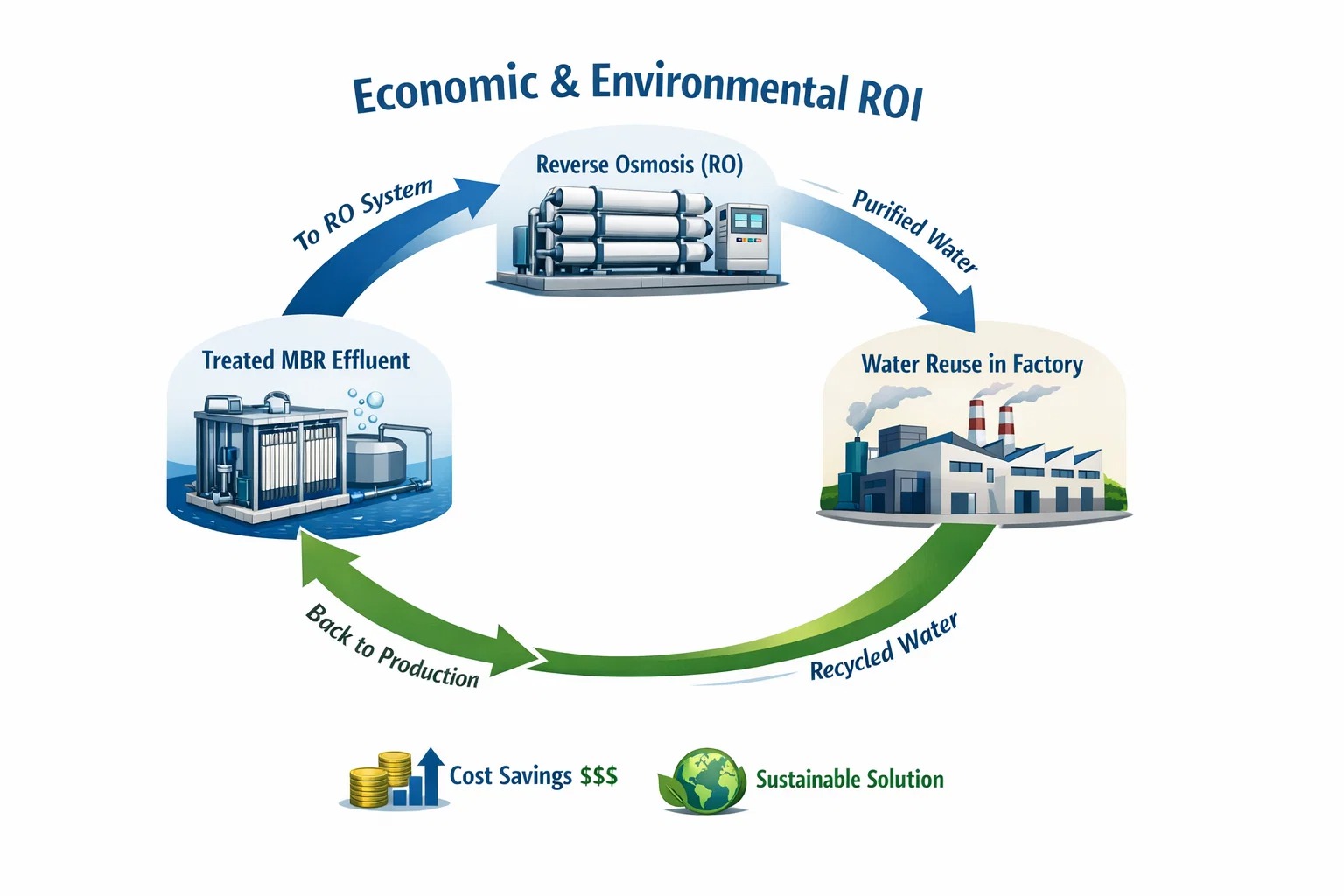 For pharmaceutical and textile industries, water is a massive overhead cost. MBR effluent is so clean it can serve as direct feed for Reverse Osmosis (RO).